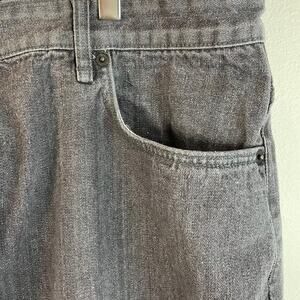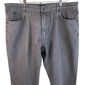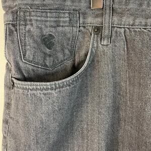 Rocawear 100% Cotton Classic Fit Denim Jeans. Men’s size 42. Gray or drab black jeans in 100% cotton. 3 front and 2 back slip pockets. Embroidered logo on coin/watch pocket and Rocawear leather patch at back waistband. Excellent preowned condition.