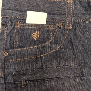 Rocawear Moto Biker Stoner Freedom Rider Stretch Jeans Tapered Fit Mid Rise Mid Wash Black 2 Coin, 4 Standard, & 2 zipper pockets Ankle Zippers Ribbed & Pleated Legs