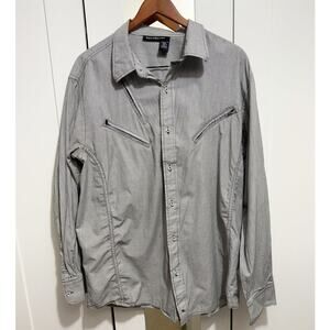 Rocawear Black White Gray Pinstriped Casual Button Down Shirt Top Mens Size 2XL