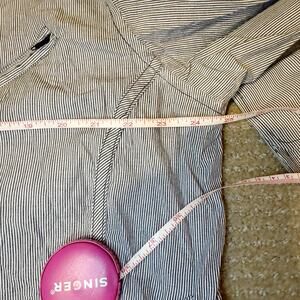 pinstriped button down, button-up shirt, Rocawear shirt, black white gray shirt, XXL casual shirt, long sleeve shirt, cotton shirt, streetwear top, men's urban fashion, classic fit shirt, preppy shirt, city wear, weekender shirt, nautical shirt, utility shirt