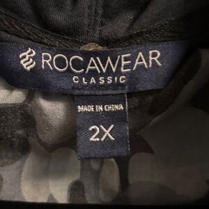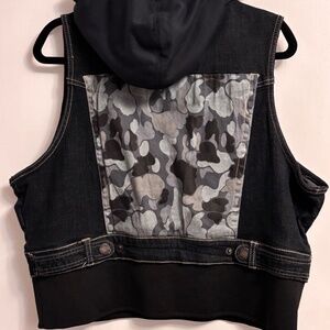 Rocawear Black/Camo Denim Vest Detachable Hoodie Size 2X Sleeveless Blk