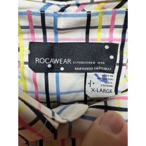 Rocawear Button Up Shirt Adult Extra Large White Plaid Long Sleeve Casual Mens.