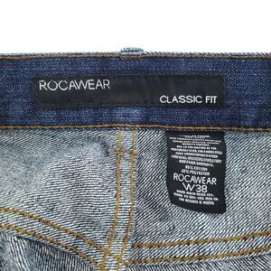 Rocawear Classic Fit denim jeans pants, size labeled "38" with measured specs of 38 waist and 32 inseam. I've included exact measurements, so you'll know if this fits you or not. Ships safely in a sealed polymailer :)