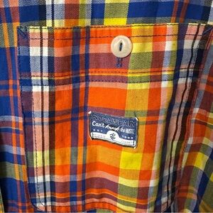 Rocawear Classic Mens Long Sleeve Blue Orange & Yellow Plaid Button Up Sz XL GUC