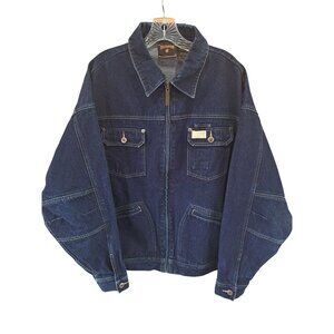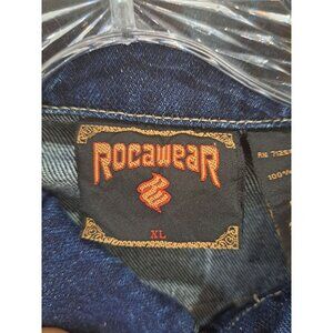 Rocawear Denim Jacket Zip Hip Hop Style Baggy Unisex Dark Wash XL Embroidered