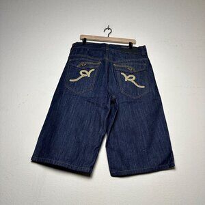 Rocawear Denim Jean Short Baggy Skater Fit Men 36 Dark Blue Y2k Indie Steetwear