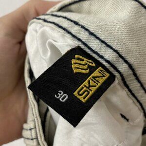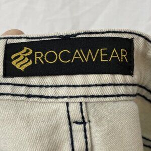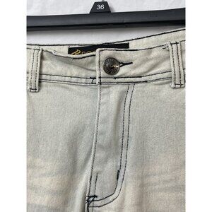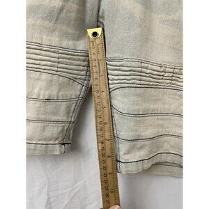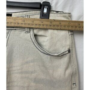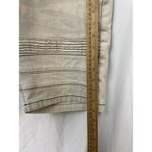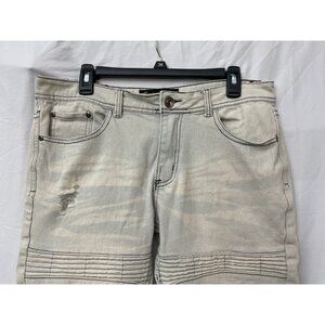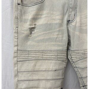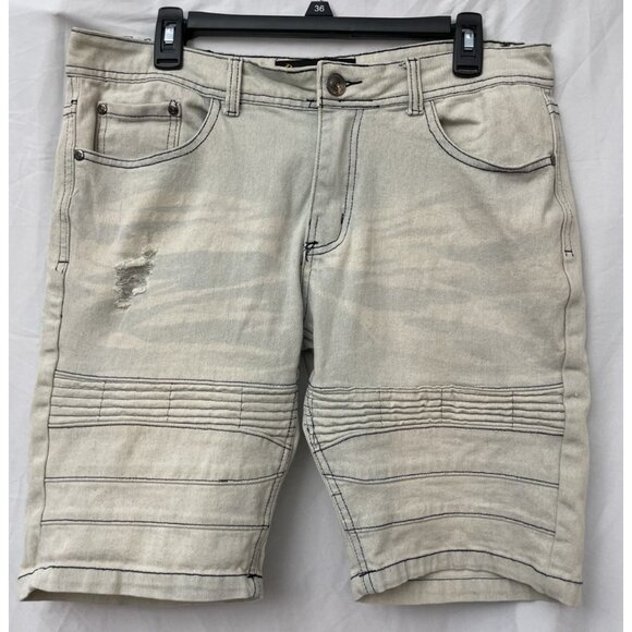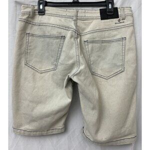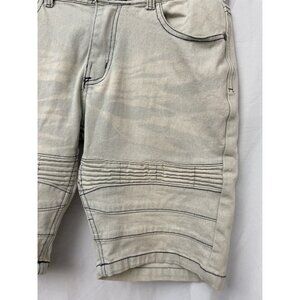 Rocawear Denim Biker Shorts Men 30 Light Beige Distressed Ribbed Panel Stretch