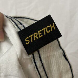 🧼 Gently used and cleaned — ready for a new fit. 🧵 Stretch denim with ribbed biker panels, distressed details, zip fly, and classic 5-pocket style. 📏 Measurements: