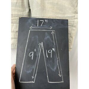Thigh width: 9" 📐 Fit: Skinny, mid-rise, easy through hip/thigh. 🧪 Fabric: 70% cotton, 28% polyester, 2% spandex. 🎨 Color: Light beige (stonewash vibe). 🏷️