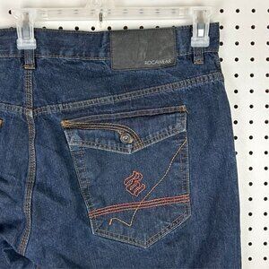 Rocawear Flap Wide Leg Denim Jeans 42x34 Streetwear Skate Baggy Stitched Y2K