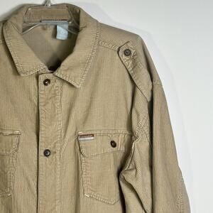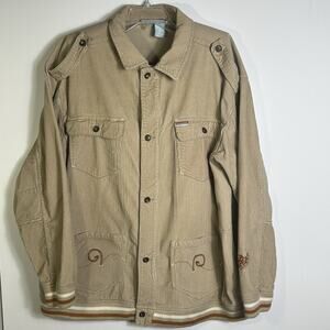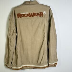 Rocawear Jacket 2XL Corduroy Beige Tan Stripe Hem Embroidered Logo Hip Hop Y2K