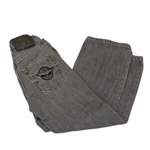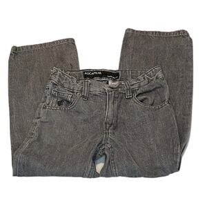 Rocawear Jeans Boys Embroidered Faded Gray Denim Jeans Size 7 Patch Pocket