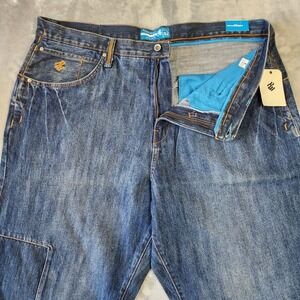 Keywords: RocaWear jeans, relaxed fit jeans, distressed denim, patchwork jeans, mens jeans, size 42 jeans, blue jeans, denim pants, casual jeans, urban style, streetwear, new with tags, NWT