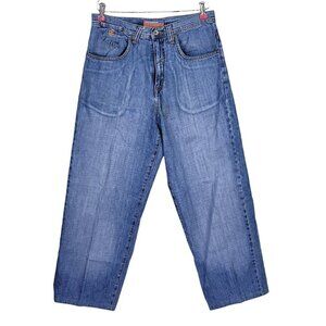 Rocawear Jeans Men Sz 32 32X28 Relaxed Fit Patch Straight Wide Leg Large Pockets