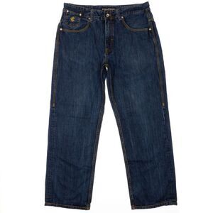 Rocawear Jeans Mens Size 38 Measures 37x32 Dark Blue Embroidered Cotton Denim