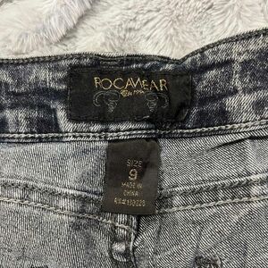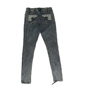 Rocawear Jeans Womens 9 Skinny Black Acid Wash Embellished Back Pocket Stretch