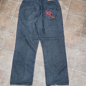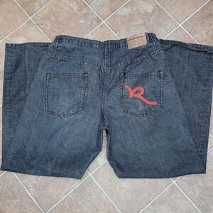 Rocawear Loose Baggy Retro Y2K Jeans w Embroidered Red Logo Pocket