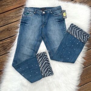 New with Tag Roca Wear Size 11 Women’s Bling & Zebra Light Stretch Medium Wash Cuffed 5 Pocket Denim Jeans.