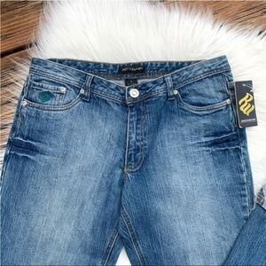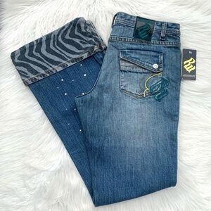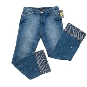 Rocawear Medium Wash Bling Zebra Cuffed Stretch Denim Jean Women Size 11