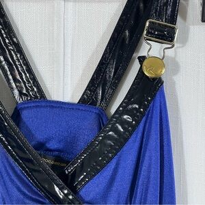 Rocawear NWT Blue Faux Patent Leather Buckle Strap Mini Babydoll Dress Size L