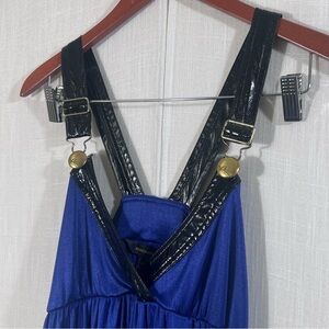 Rocawear Blue Faux Patent Leather Buckle Strap Mini Dress