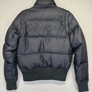 Rocawear Y2K Black Puffer Bomber Jacket W/Hot Pink Lining Vintage Women XS