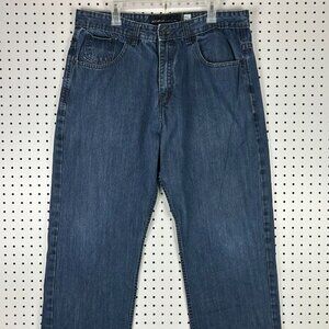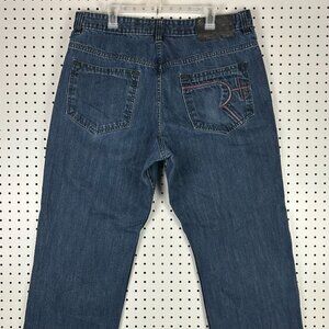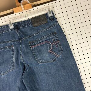 Rocawear Y2K Dark Wash Jeans 38x34 Embroidered Stitched Skater 90s Cyber Punk