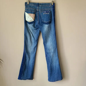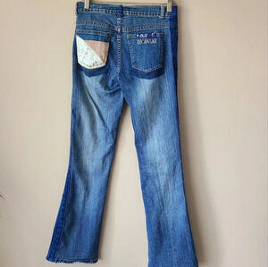 Good condition. 28 in.inseam, 27 in.waist .The jeans has a couple little spots on the front.