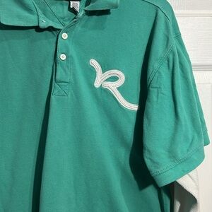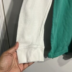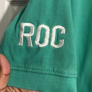 Rocawear boy’s long sleeve polo - green and white - size xl (18 - 20). White waffle knit sleeves. Logo on side of sleeve and shirt. Preloved