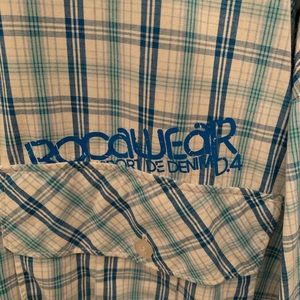 Blue and white Rocawear short sleeve button down shirt. Great condition. 2XL.