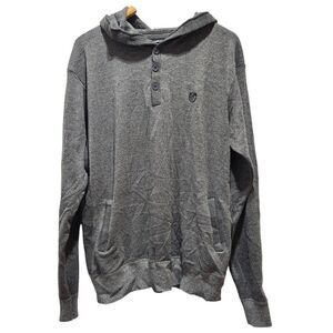 Rocawear hooded quarter button long sleeve pockets elbow patches gray Large