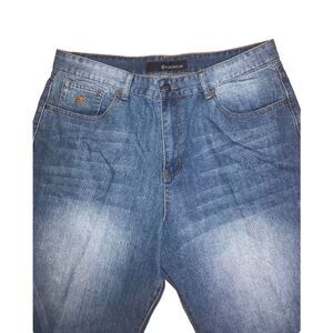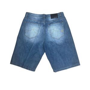 Light faded wash denim shorts. Five pockets. Belt loops. Button and zip closure. 100% cotton. Size: 38Wx14L. Preowned in good condition.