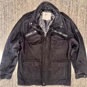 Rocawear Men Vintage Utility Pocket Fleece Bomber Sport Coat Jacket Black Large