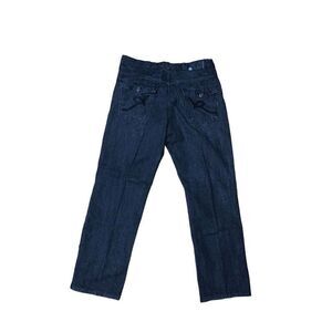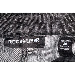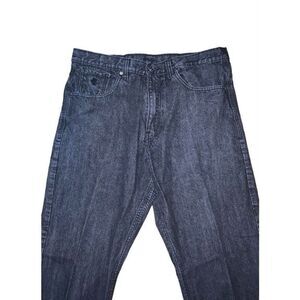 Charcoal black relaxed jeans. Embroidered “R” on back pockets. Five pockets. Back pockets with flap and button closure. Belt loops. Button and zip closure. 100% cotton. Size: 38Wx34L. Preowned in good condition.