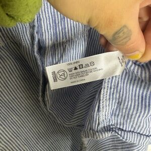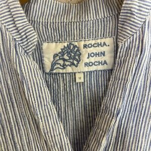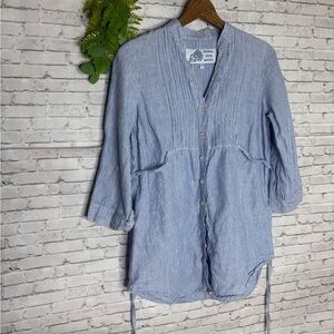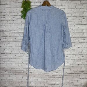Rocha. John Rocha Linen Blue Vertical Stripe 3/4 Sleeve Blouse