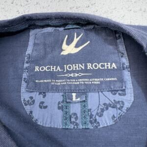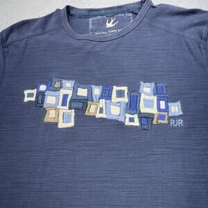 Rocha John Rocha Shirt Mens Large Blue Embroidered Geometric RJR Slub Knit Tee
