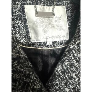 Rocha Tweed Jacket Sz 14 Black Gray Statement Coat John Rocha RJR Wide Collar