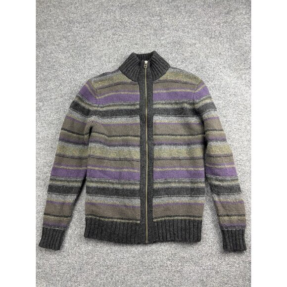 Rocha.John Rocha Sweater Womens Small Gray Purple Striped Full Zip Lambswool