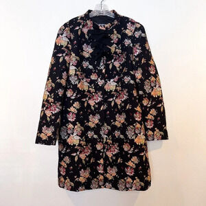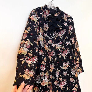 Rochas Paris Black Floral Designer Parisian Bow Front Snap Button Preppy Blazer Trench Coat 46