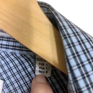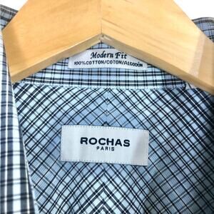 Rochas Paris Sleeve Button Down Light Blue Plaid Size Large