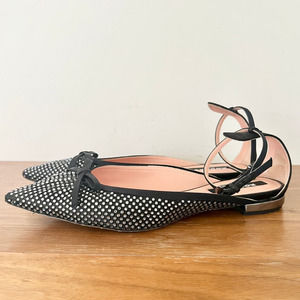 Rochas Rhinestone Embellished Pointed Toe Flat Sandal Black Womens Size 38.5 / 8.5