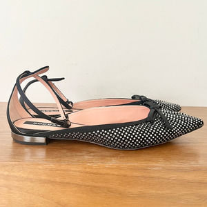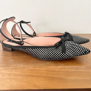 Rochas Rhinestone Embellished Pointed Toe Flat Sandal Black Womens Size 38.5/8.5
