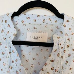 Rochelle Behrens The Shirt Blue Ditsy Floral Small Tiered Sleeve Boho Prairie