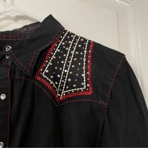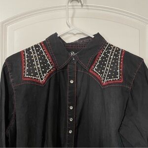 Rock 47 By Wrangler Black Long Sleeve Button Up Western Rodeo Shirt