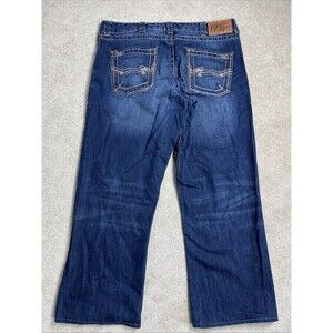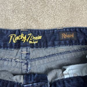 Rock 47 Denim Wrangler Jeans Mens 40x30 Hem Extend 32” Blue Relaxed Embroidered