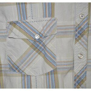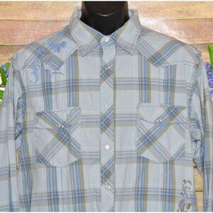 Rock 47 Mens XL Gray Plaid Pearl Snap Button Up Western Shirt Raw Hem Cotton