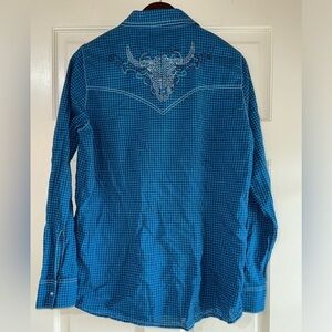 Rock 47 WRANGLER - Jeweled Cow Skull Long Sleeve Button Up - Size Large
