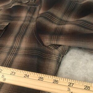 Color/Pattern: Brown/black/tan plaid with a washed gradient effect