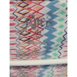 This Rock 47 Wrangler shirt is perfect for any cowgirl or Western enthusiast. The shirt features a geometric pattern with colorful accents, long sleeves with casual cuffs, and a collared neckline with a snap closure. The shirt is made of woven cotton material that is machine washable for easy care.