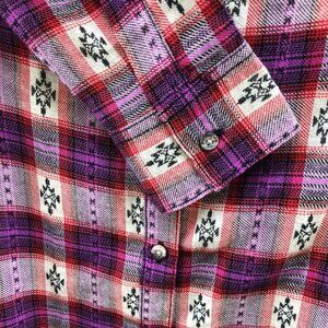 Rock 47 by Wrangler Western Plaid Pink Slub Tunic Button Up Top Womens Medium M